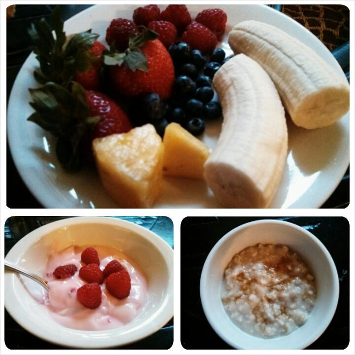 - Breakfast. Whether you think breakfast is the most important meal of the day or you’d call yourself a skeptic it is still an easy meal to keep on the healthy side. For many of us it is also the meal we are more likely to eat at the hotel if we are out exploring all day. Use this time to give your body the fuel it needs as it revs up for your day of adventure. Fresh fruit with whole wheat toast is one of my favorite things to have in the morning and is usually pretty easy to find at breakfast hotspots when you’re traveling. A few other options are oatmeal, yogurt with berries, or apple slices with peanut butter and sliced almonds on them. I tend to load my plate full of all the native fruits available when I’m in a new place to see what I’m missing. Breakfast is the time to take control of the first food you give your body so you can start your day on the right foot!